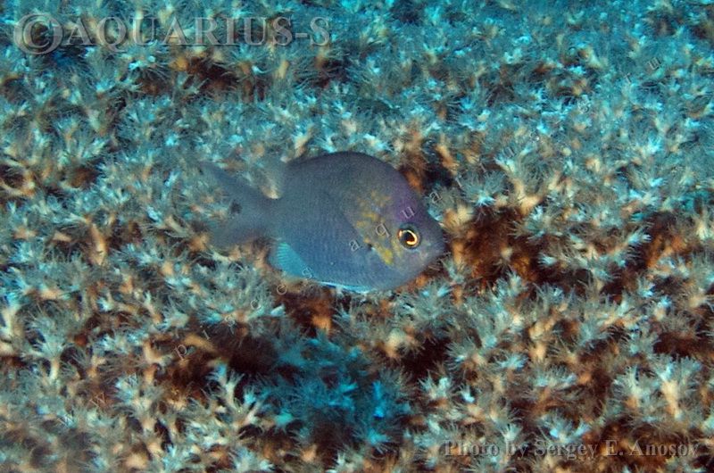 Хромис альфа (Yellow-speckled chromis). Фото в природе. Архипелаг Спратли. |